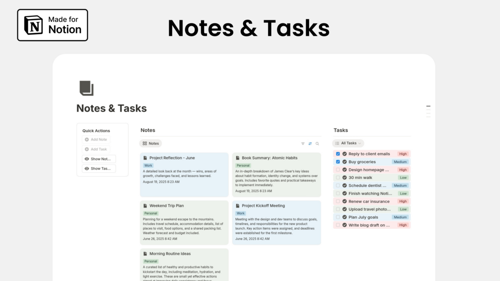 Keep your thoughts and tasks organized with this minimalistic and effective Notion notes template.
