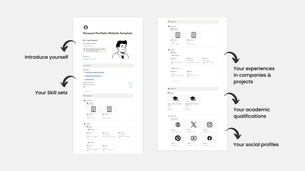 Presenting the Notion Personal Portfolio Website Template: A sleek, minimalist design that elegantly showcases your journey. Highlight intro, skillsets, experience, and education with clarity. Let your story shine through a clean and engaging UI.
