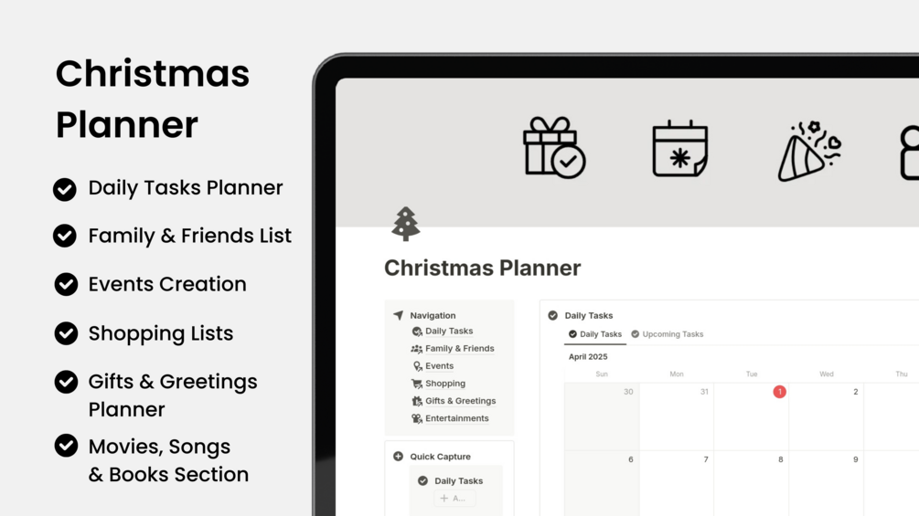 Daily Tasks Planner: Efficiently plan your day-to-day activities during the festive season.