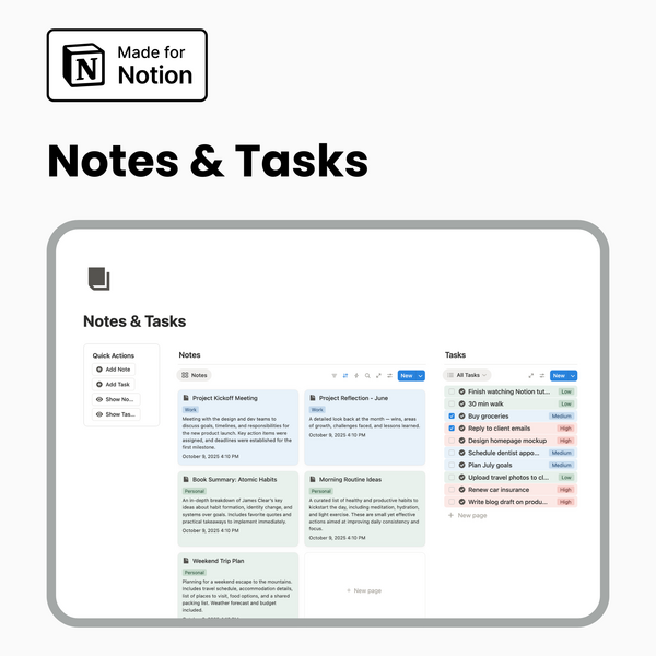 The "Notion Starter Bundle" is a set of 7 handy Notion templates that help you dive right into using Notion. It's like a shortcut to easily get organized for tasks, notes, and more. Say goodbye to the learning curve and hello to efficient productivity.
