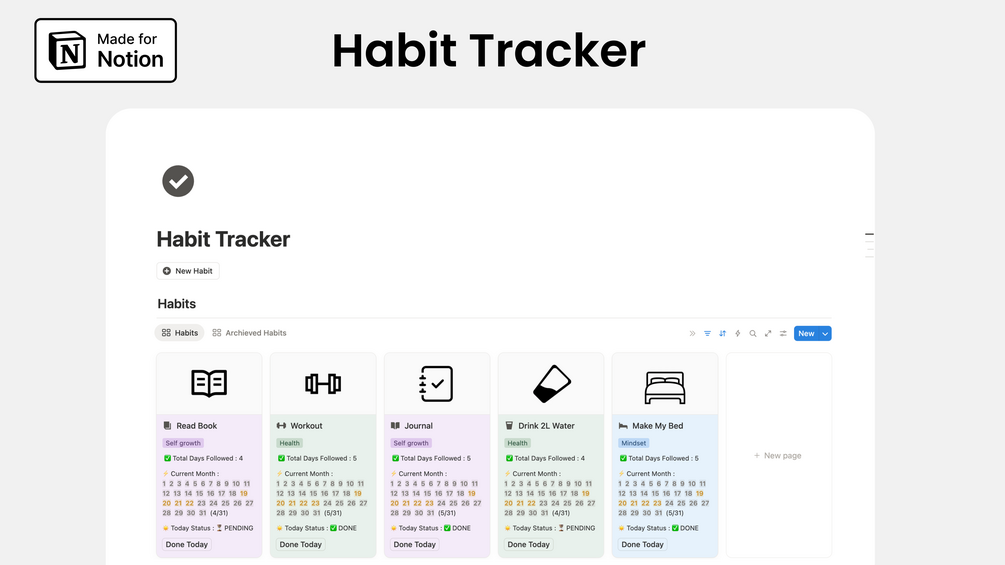 This clean and minimal Notion Habit Tracker is designed for daily use — not complex planning or overwhelming systems.