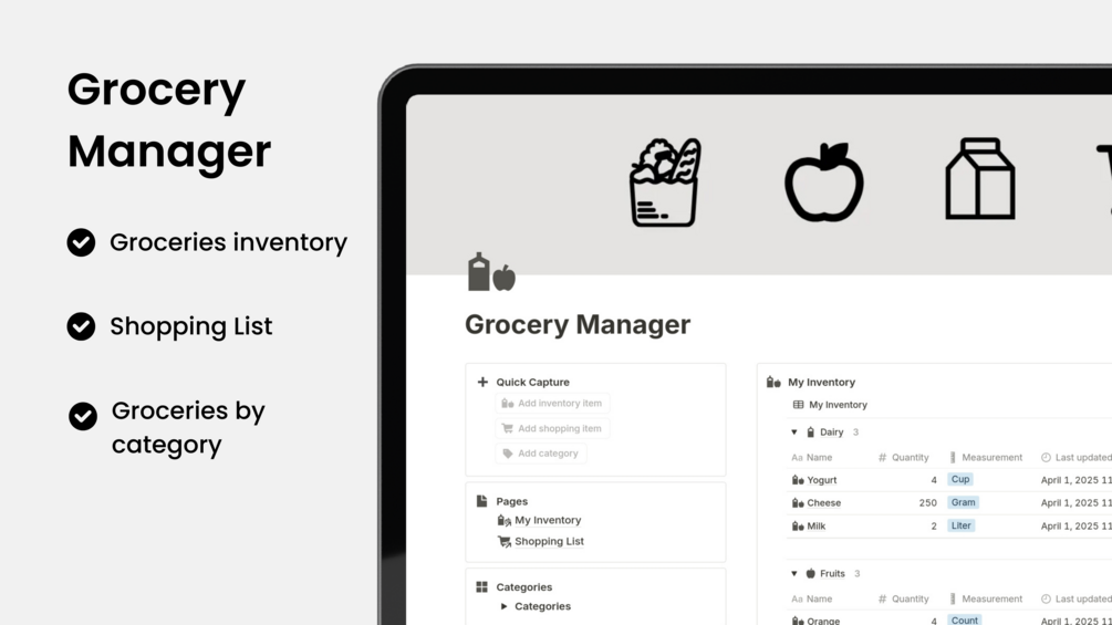 Introducing the beautifully crafted "Grocery Manager Notion Template"