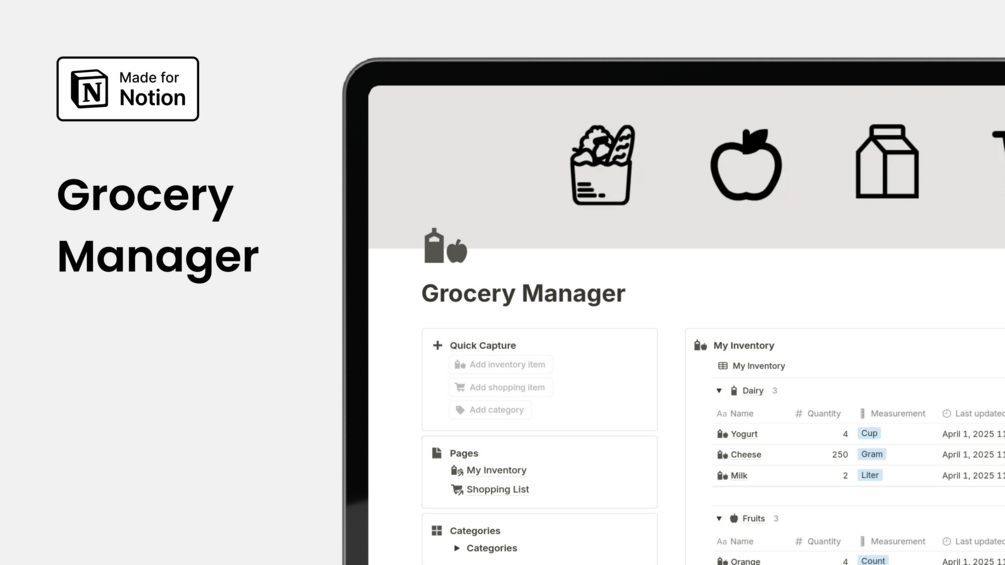 Introducing the beautifully crafted "Grocery Manager Notion Template"